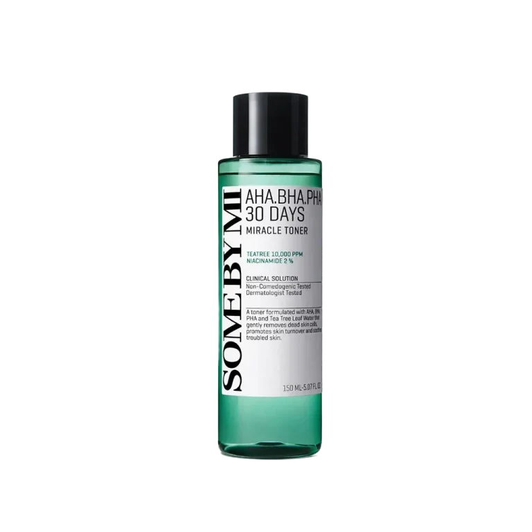 تونر معجزة 30 يوم من SOME BY MI يحتوي على تركيبة AHA، BHA، وPHA التي تساعد في تحسين مظهر البشرة وتنقيتها بلطف.