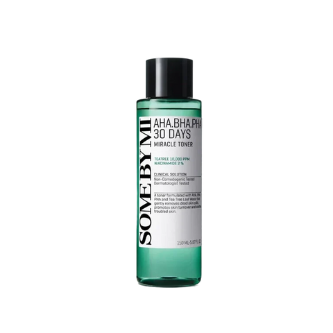 SOME BY MI AHA, BHA, PHA 30 Days Miracle Toner features a gentle formula with AHA, BHA, and PHA to help improve the skin's appearance and cleanse effectively.